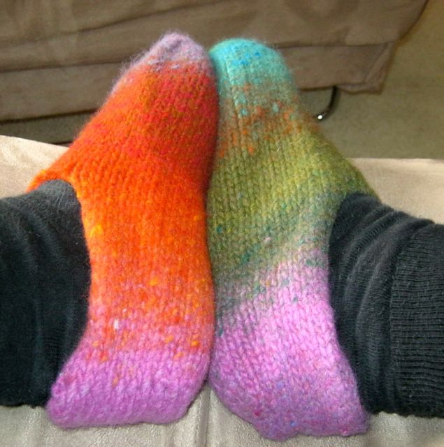 These are gorgeous! I love non matching homemade socks and slippers, it's one of a kind :D